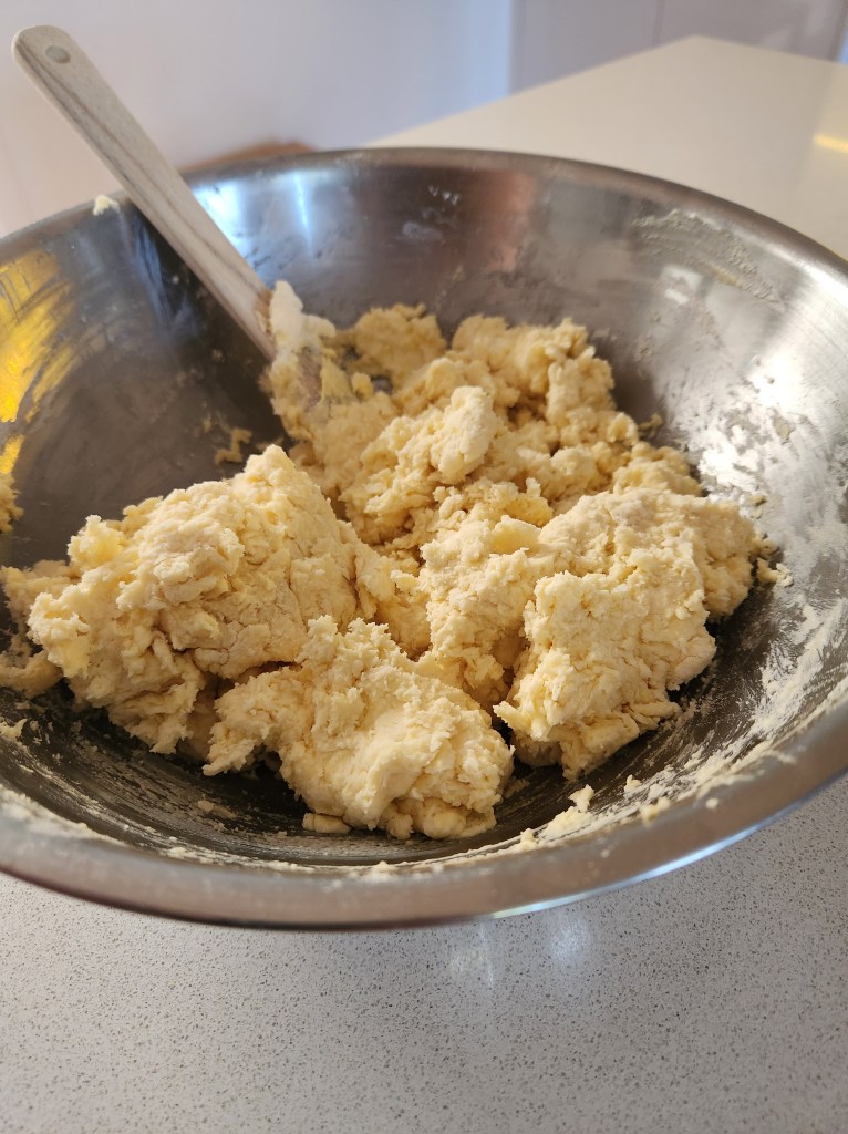 Keep mixing until a soft, pliable dough forms. It might feel a little sticky at first, but resist the urge to overwork it—this dough is meant to stay tender, ensuring your pastries turn out perfectly flaky and light.