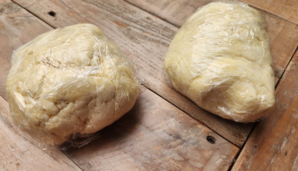 Once your dough is ready, divide it into two equal portions. This makes it easier to handle and roll out later. Shape each portion into a ball. Then, wrap each ball tightly in plastic wrap to keep the dough fresh and prevent it from drying out.