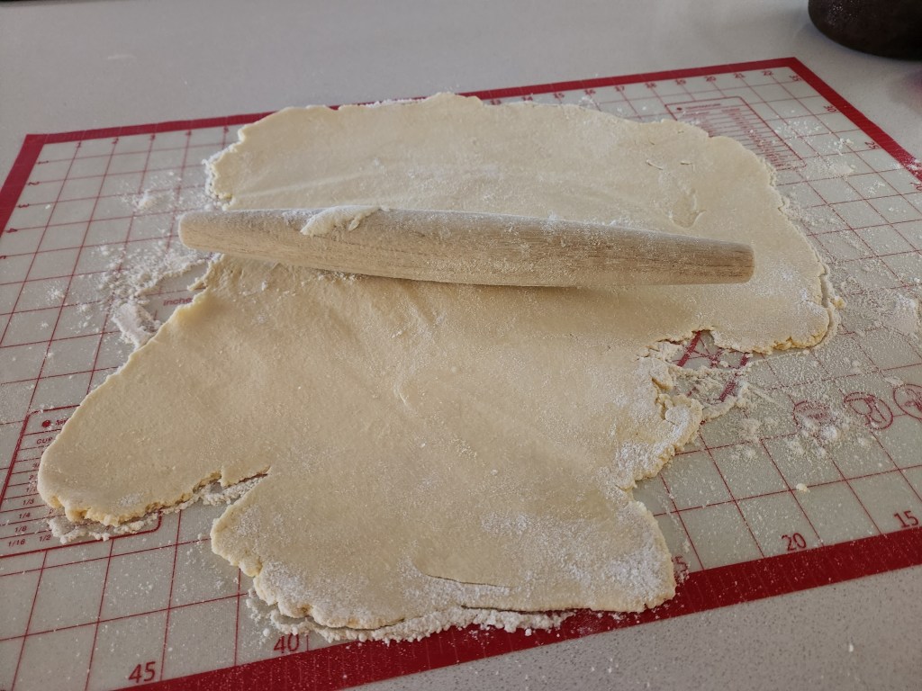 Next, take a section of the chilled dough and roll it out on a lightly floured surface.